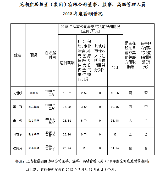 市宜居公司企業(yè)負(fù)責(zé)人2018年度薪酬情況