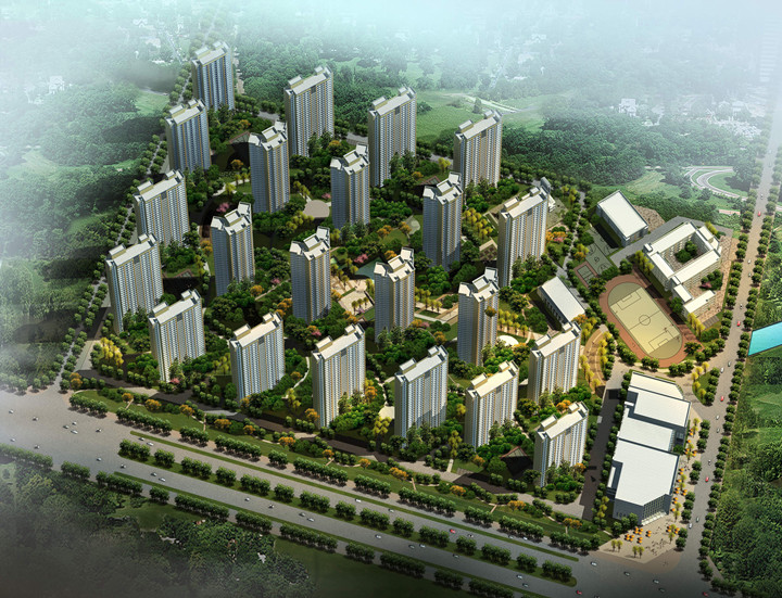 宜居月亮灣位于蕪湖市三山區(qū)峨溪路東側(cè),南至黃垅路,北至焦灣路,占地約200畝,建筑密度為13.5%,容積率2.45,綠地率52.3%。規(guī)劃總建筑面積約41.1萬㎡, 其中計容建筑面積32.7萬㎡(含住宅28.8萬㎡,商業(yè)用房2萬㎡,菜場0.4萬㎡,幼兒園0.2萬㎡,小學0.9萬㎡,其他配套用房0.4萬㎡),不計容面積8.4萬㎡,主要為地下機動車、非機動車庫,人防地下室,景觀架空層等。該項目由27幢單體建筑組成,住宅6276套,機動車停車位2830個,非機動車停車位13000個。