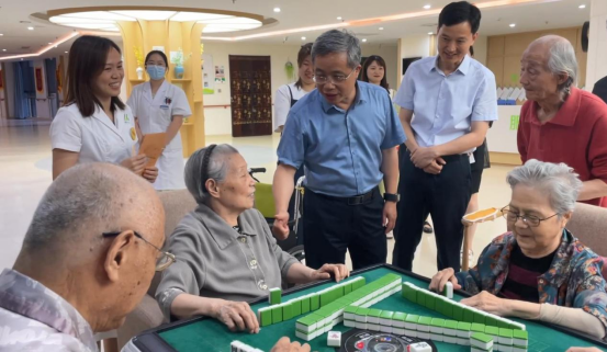 在徽州路宜鄰中心項目現(xiàn)場,公司黨委書記、董事長沈世躍同志向吳書記一行匯報了項目施工進展、業(yè)態(tài)規(guī)劃、招商運營、廉潔工地創(chuàng)建等工作,實地考察了項目思廉亭、廉潔文化墻。吳書記對將廉潔元素融入項目建設的做法給予充分肯定。隨后來到羅蘭小鎮(zhèn)養(yǎng)老公寓,詳細了解了養(yǎng)老公寓的入住流程、戶型類型、配套服務、老人健康管理等。在走訪中,偶遇正在休閑活動的長者,并與他們親切交談、詢問入住體驗,盈盈笑語充溢于室。